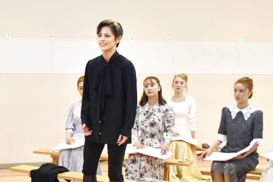 雪組生が、この日までに稽古を重ねてきた情熱的で伸びやかな歌唱を披露すると、同氏からは、壮大なナンバーからモダンな楽曲まで、一つひとつに込められた心情やその表現方法など、作曲家の視点からの熱意のこもったアドバイスをいただき、今作への期待と手ごたえを確かめあう機会となりました。