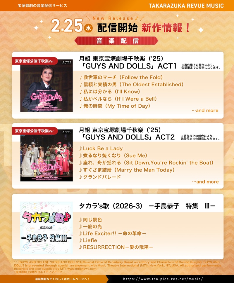 TAKARAZUKA REVUE MUSICでは、2月25日より次の楽曲を配信しております。