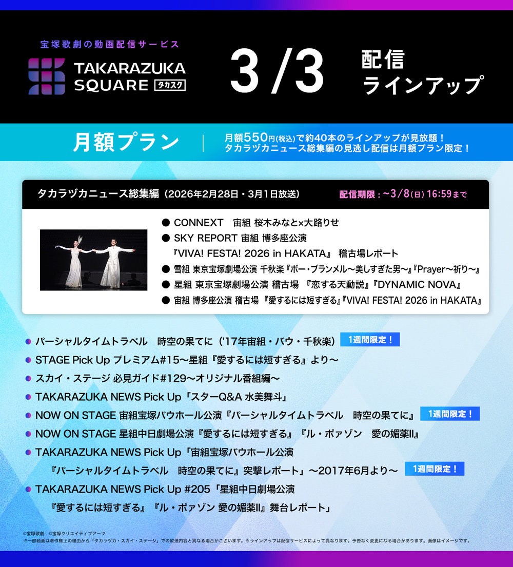 動画配信サービス“TAKARAZUKA SQUARE【タカスク】”ラインアップ更新!
