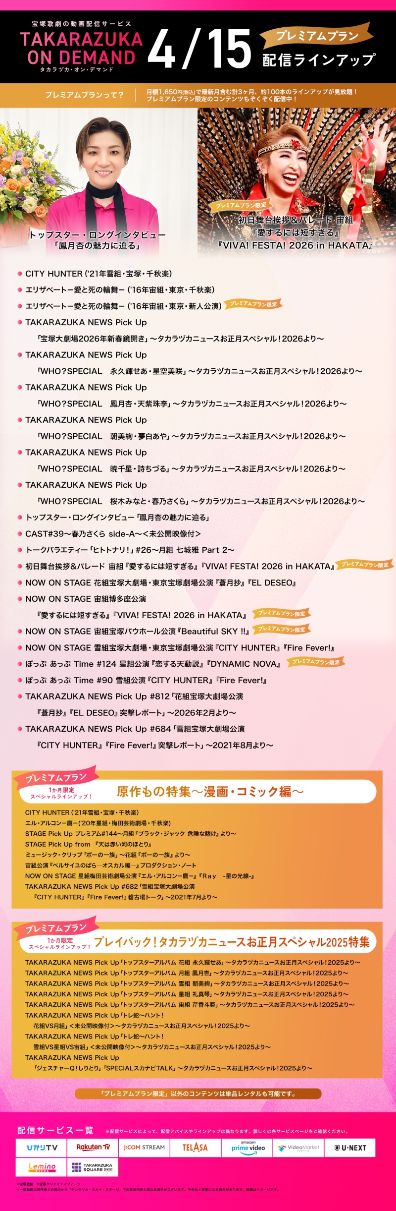 (追)<動画配信サービス タカラヅカ・オン・デマンド>4月15日配信開始のラインアップ(『Eternal Voice 消え残る想い』『ベルサイユのばら』『CITY HUNTER』他)