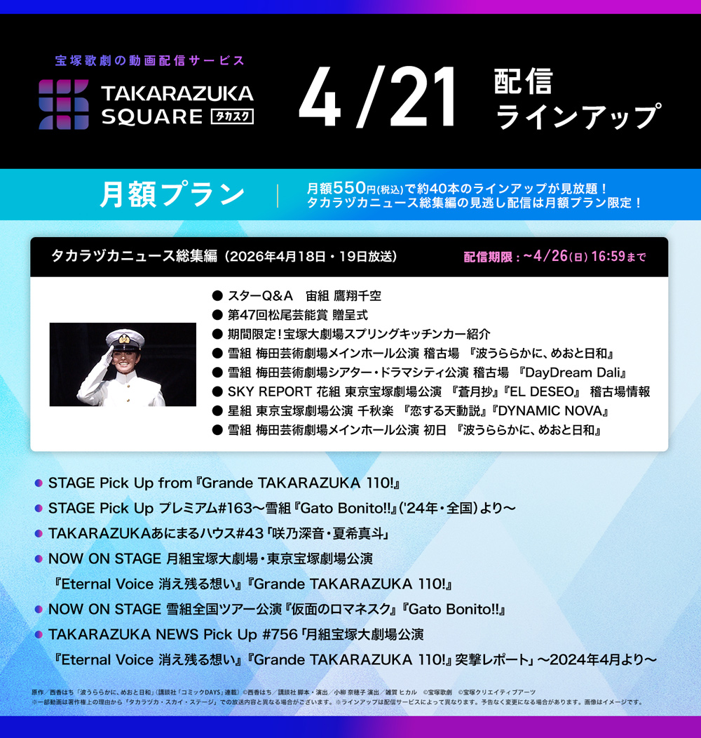 動画配信サービス“TAKARAZUKA SQUARE【タカスク】”ラインアップ更新!
