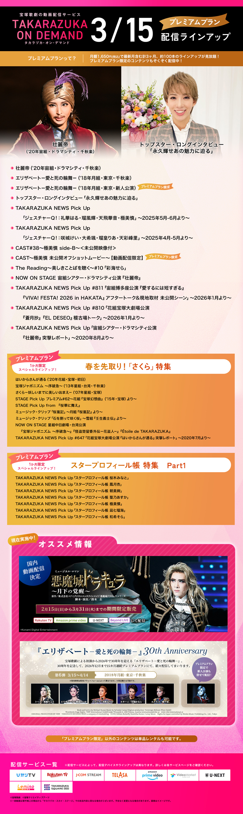 (追)<動画配信サービス タカラヅカ・オン・デマンド>3月15日配信開始のラインアップ(『記憶にございません!』『壮麗帝』他)