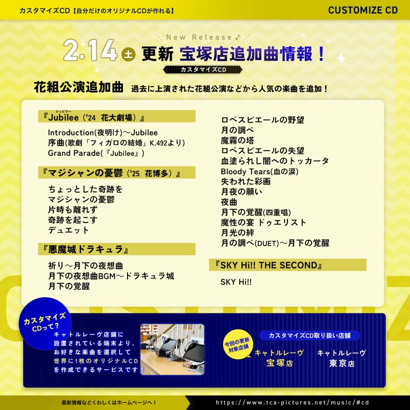 <カスタマイズCD>花組新曲追加のお知らせ(キャトルレーヴ宝塚店)