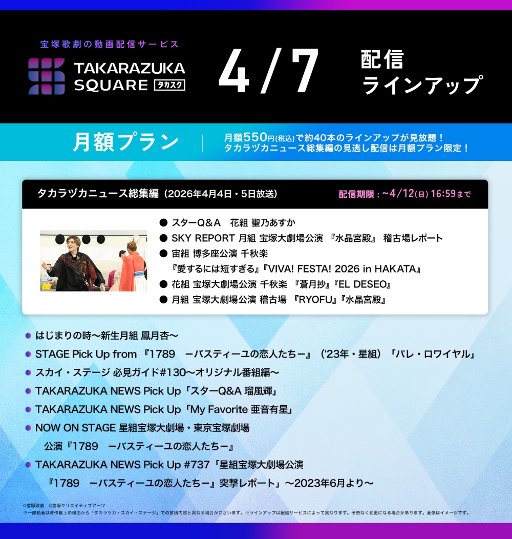 動画配信サービス“TAKARAZUKA SQUARE【タカスク】”ラインアップ更新!