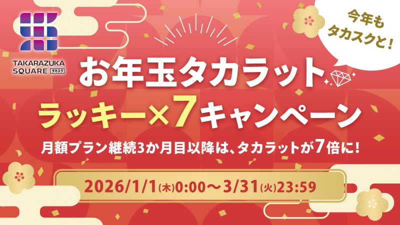 TAKARAZUKA SQUARE【タカスク】の月額プランもしくはサブスクリプションサービス「宝塚歌劇共通ID+(プラス)」継続3か月目以降、タカラットが7倍に!