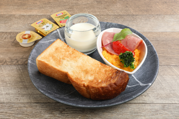 宝塚市のパン店「パンネル」の3枚切り食パンを使用したモーニングプレート。