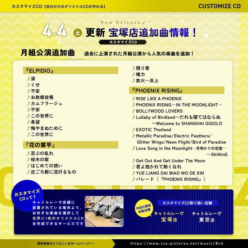 <カスタマイズCD>月組新曲追加のお知らせ(キャトルレーヴ宝塚店)